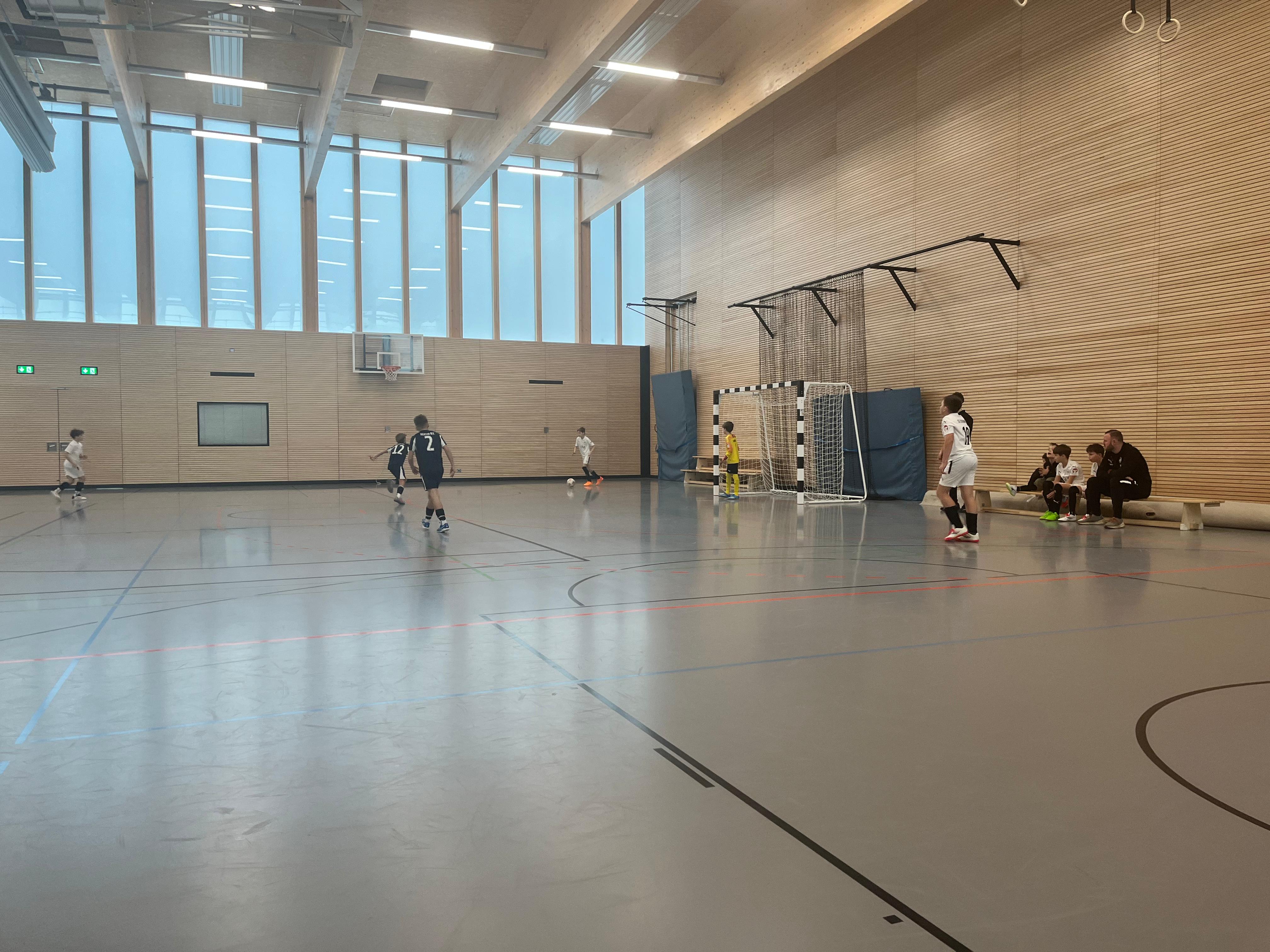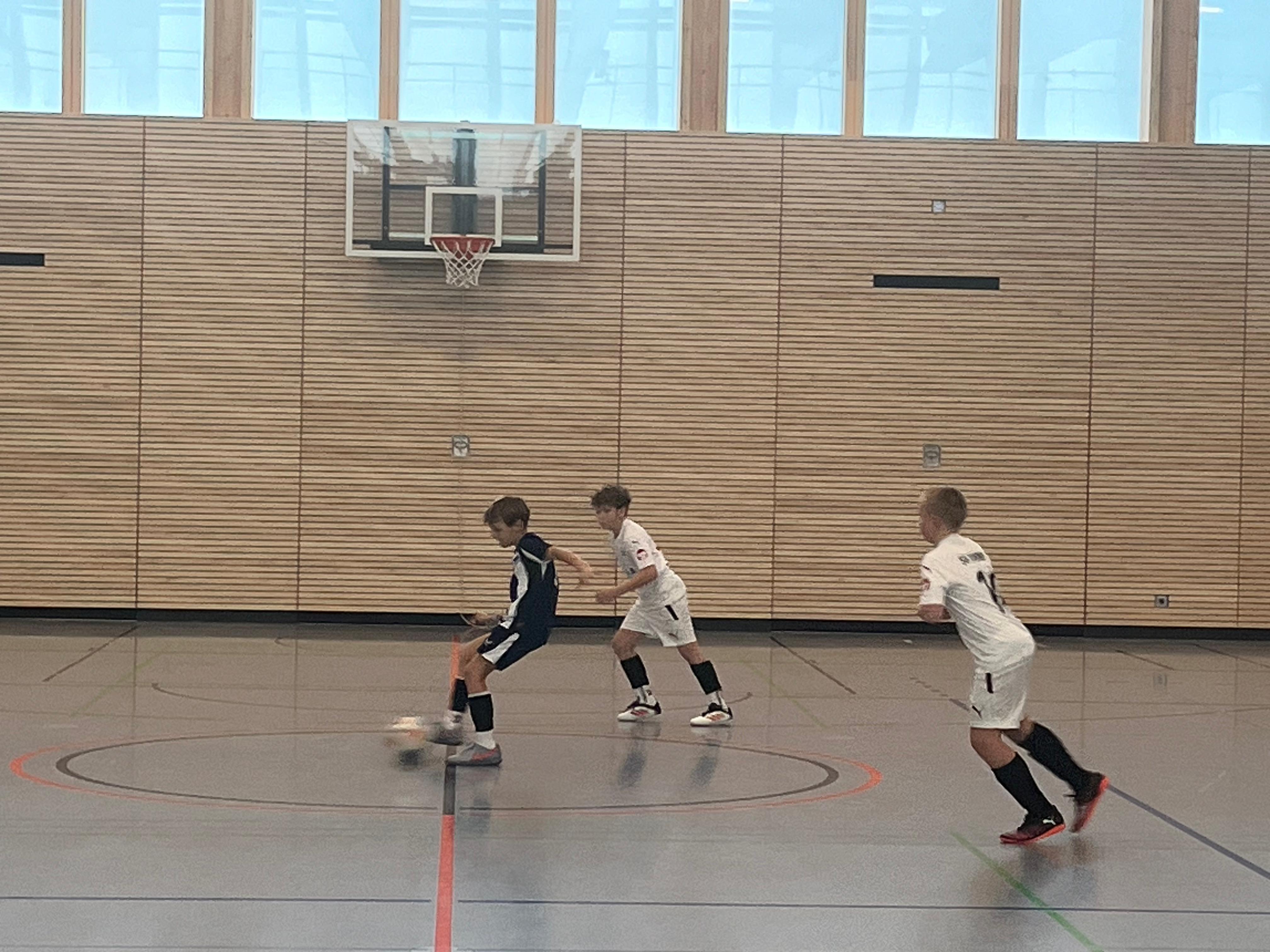 Nach vier Spielen kam die Überraschung: Die letzten beiden Partien der Vorrunde wurden im sogenannten „Käfig“ ausgetragen – ein engerer, rundum begrenzter Spielfeldbereich. Für unsere Jungs eine neue Erfahrung, mit der sie zunächst sichtlich zu kämpfen hatten: