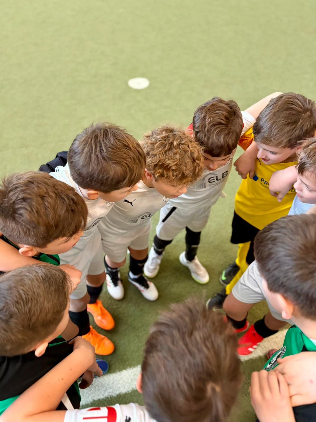 Nach vier Spielen kam die Überraschung: Die letzten beiden Partien der Vorrunde wurden im sogenannten „Käfig“ ausgetragen – ein engerer, rundum begrenzter Spielfeldbereich. Für unsere Jungs eine neue Erfahrung, mit der sie zunächst sichtlich zu kämpfen hatten: