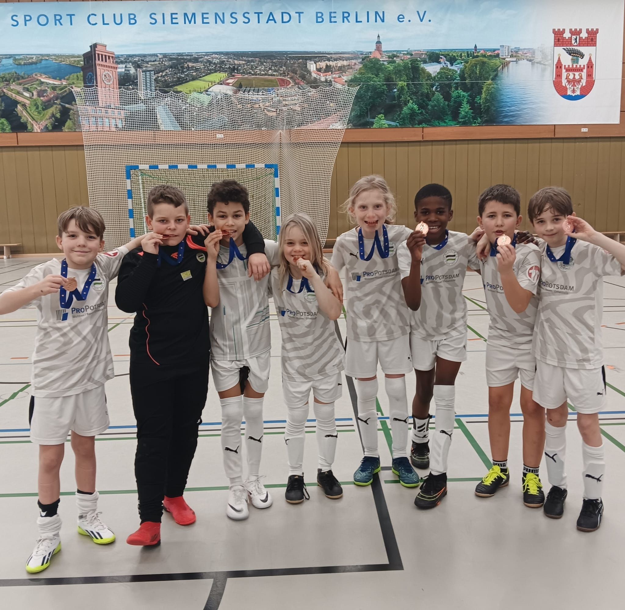 Im Halbfinale stellten die Fläminger Füxxe kein Problem dar, beim 3:1 traf Enno Danischewski zwei Mal und Israel Eneh ein Mal. Leider verließen unseren Jungs im Finale dann Kraft und Mut. Erneut hieß der Gegner Tennis Borussia Berlin, erneut stand am Ende eine Niederlage. 0:2 stand es nach 10 Minuten. Trotzdem eine tolle Leistung der Mannschaft, in der Kapitän Emilio Stier herausragte. Von den Trainern der anderen Teilnehmer wurde er zum besten Spieler des Turniers gewählt. Gut gemacht, Emilio.